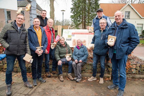 Op vrijdag 12 december is in Haarlo het nieuwe Klompenpad Haarlose Veldpad onder grote belangstelling feestelijk geopend. Wethouder Ria Leliveld van de gemeente Berkelland, voorzitter Ronald Grooters van vereniging Haarlo’s Belang en Arjan vriend, directeur-bestuurder van Stichting Landschapsbeheer Gelderland (SLG) onthulden het startpaneel, samen met vrijwilligers, kinderen en deelnemende grondeigenaren. De opening vond plaats bij het startpunt HCR Prinsen, Eibergseweg 13 in Haarlo. Na de officiële handeling volgde een korte wandeling onder begeleiding van een gebiedskenner over een deel van het Klompenpad. Dus klompen aan, rugzak op en gaan!